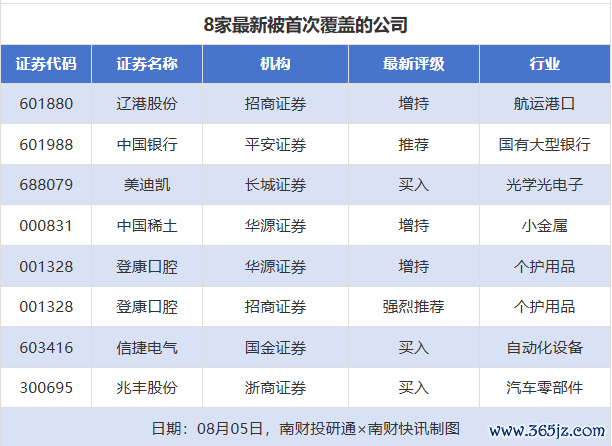 首次覆盖方面怎么看配资公司好坏,8月5日券商共给出了8次首次覆盖,其中辽港股份获得招商证券给予“增持”评级,中国银行获得平安证券给予“推荐”评级,美迪凯获得长城证券给予“买入”评级,中国稀土、登康口腔获得华源证券给予“增持”评级。